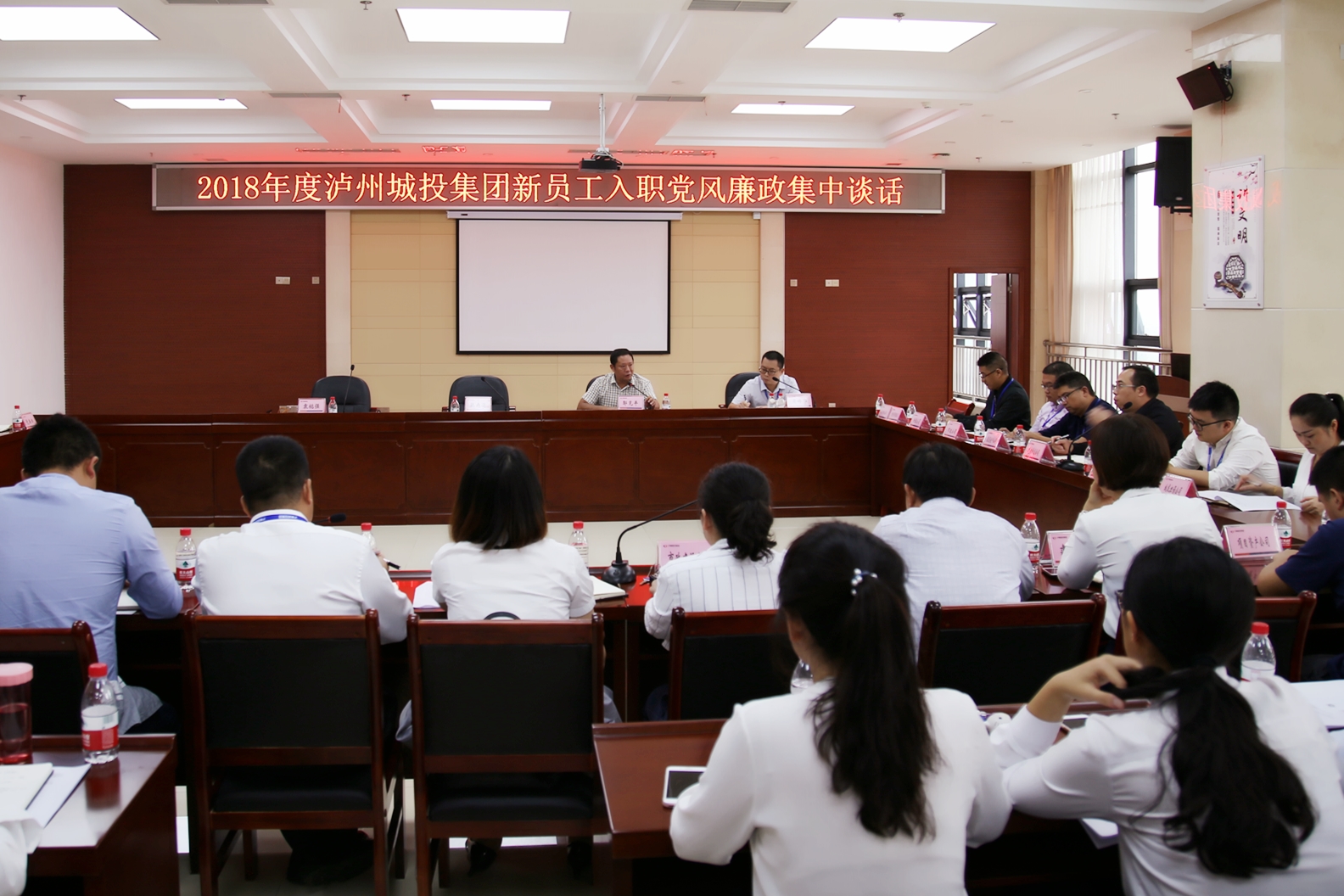 9月19日,瀘州城投集團(tuán)開展2018年度新員工入職黨風(fēng)廉政集中談話。瀘州城投集團(tuán)在家班子成員、部門負(fù)責(zé)人、子公司相關(guān)高管以及全體新員工參加了會議。
