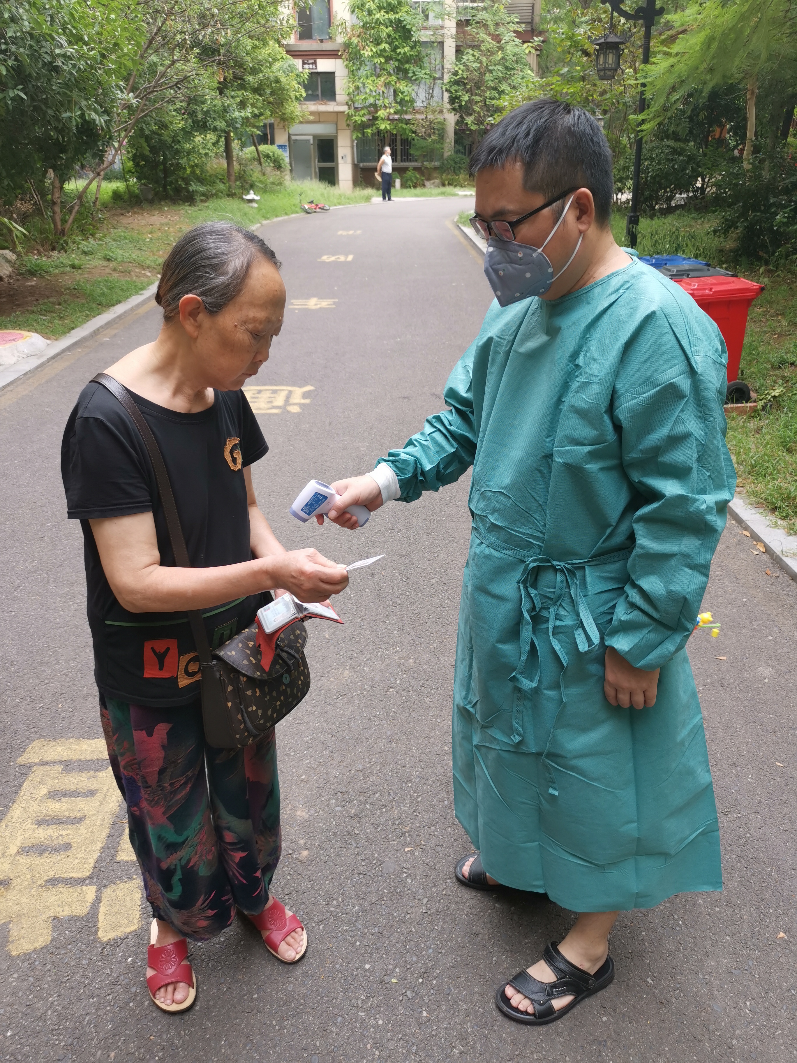 “老輩子,來測一下體溫”。城投集團(tuán)黨委委員、副總經(jīng)理黃修華正在小區(qū)門口為進(jìn)出的居民測量體溫。他下沉一線、強(qiáng)化擔(dān)當(dāng),主動(dòng)認(rèn)領(lǐng)工作任務(wù),認(rèn)真做好卡口值守、核查登記、秩序維護(hù)、困難群眾幫扶等工作,為社區(qū)疫情防控貢獻(xiàn)力量。他說,“真真實(shí)實(shí)地感受到了防疫工作者和志愿者們的辛苦,但作為一名黨員,能為大家服務(wù),內(nèi)心是快樂的。”