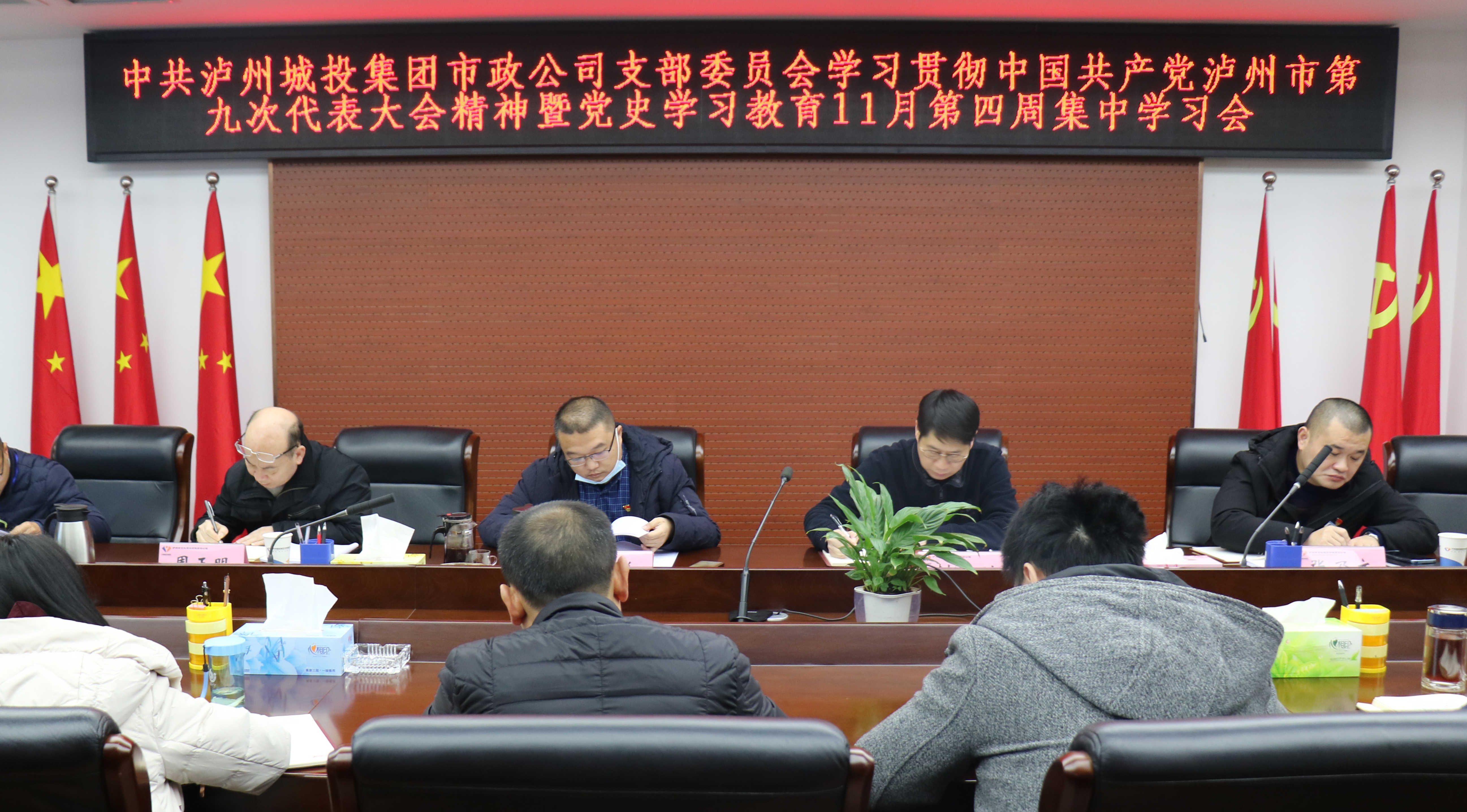 11月24日,市政建設公司黨支部召開學習貫徹中國共產黨瀘州市第九次黨代會精神暨黨史學習教育11月第四周集中學習會,傳達學習了《中共中央關于黨的百年奮斗重大成就和歷史經驗的決議》、瀘州市第九次黨代會精神等。