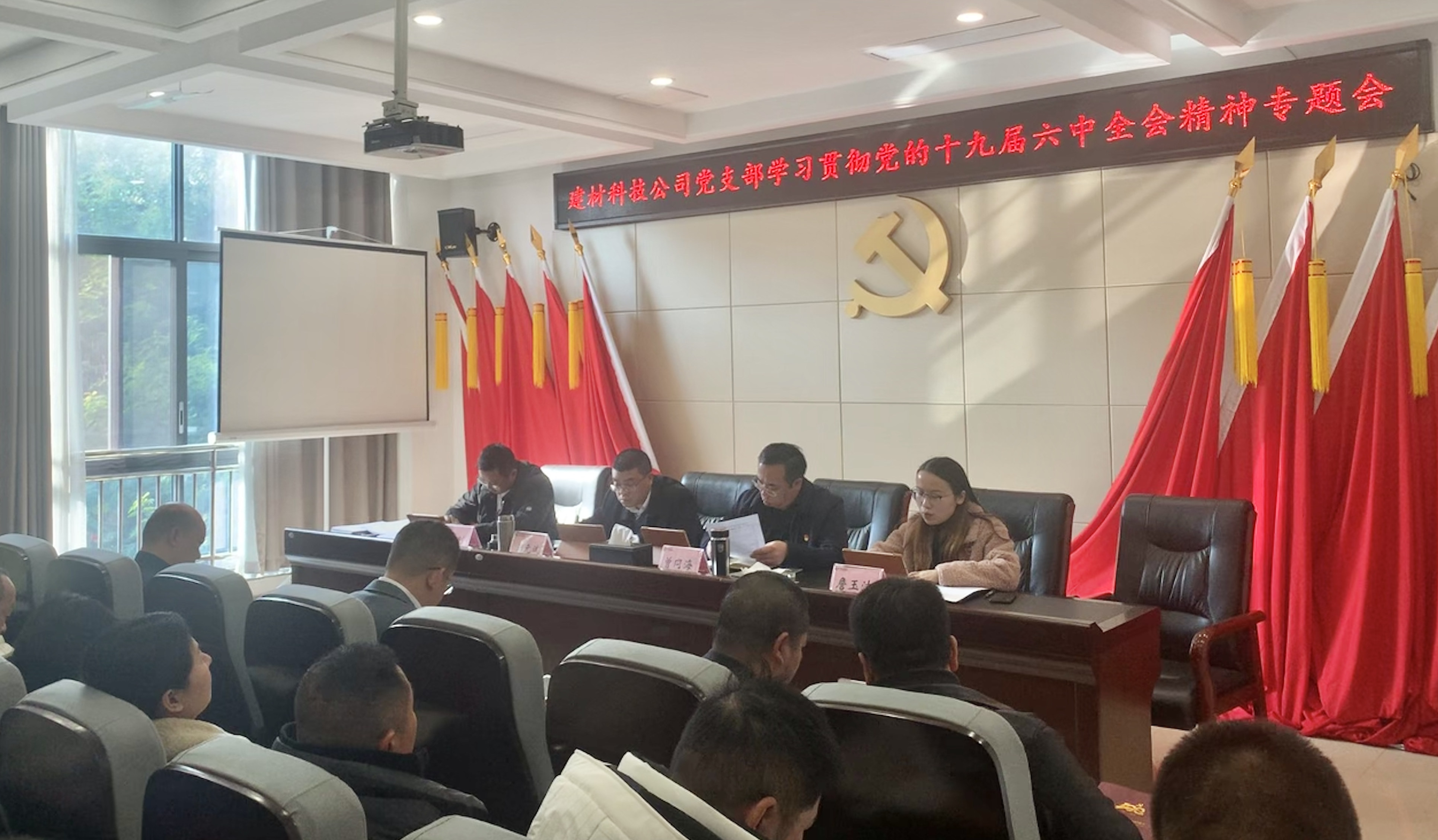 11月25日,建材科技公司黨支部開展11月黨員(擴大)會議暨黨日活動,集中學習了黨的十九屆六中全會精神等內容。