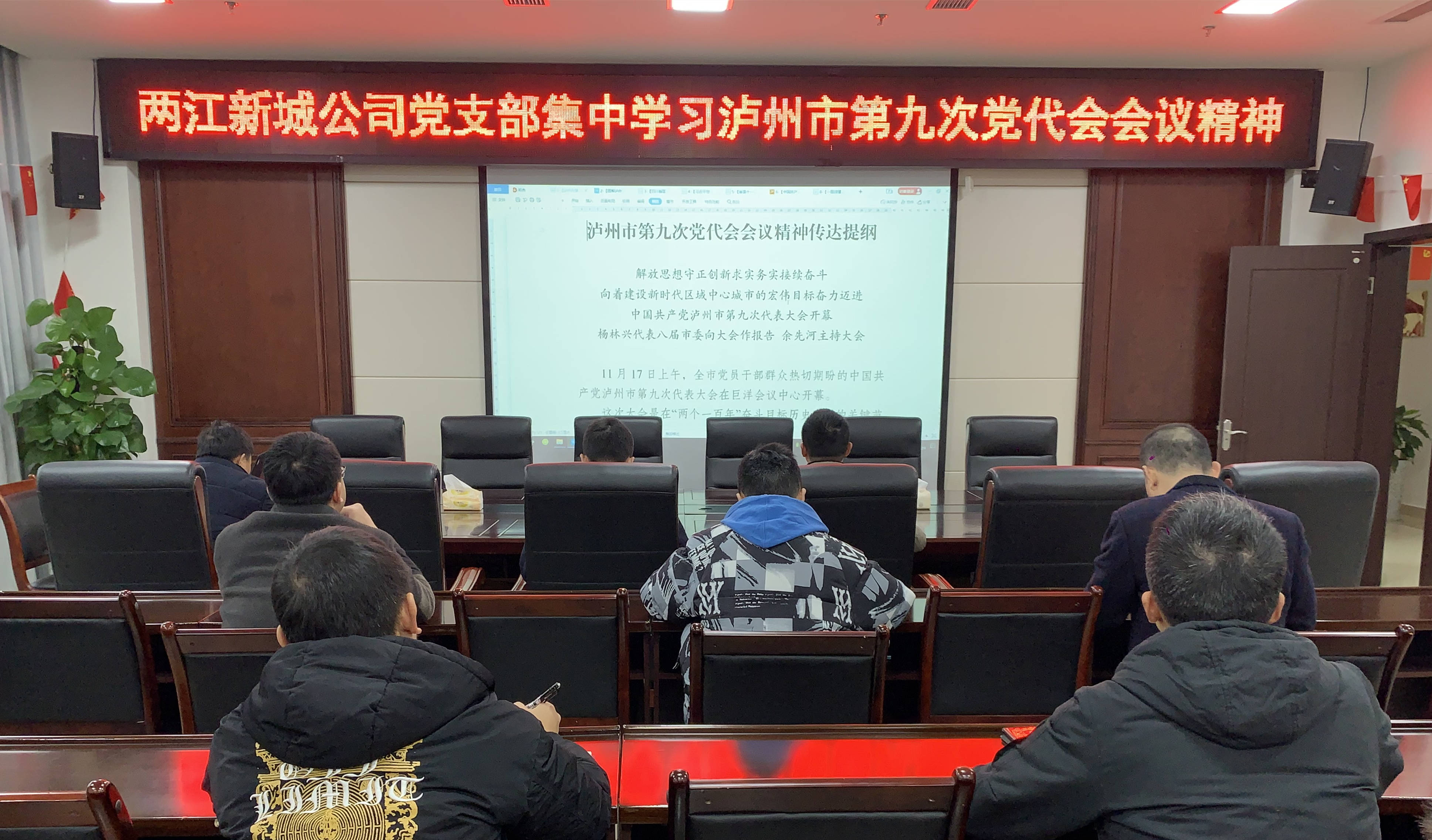 兩江新城公司黨支部傳達學習黨的十九屆六中全會和瀘州市第九次黨代會精神