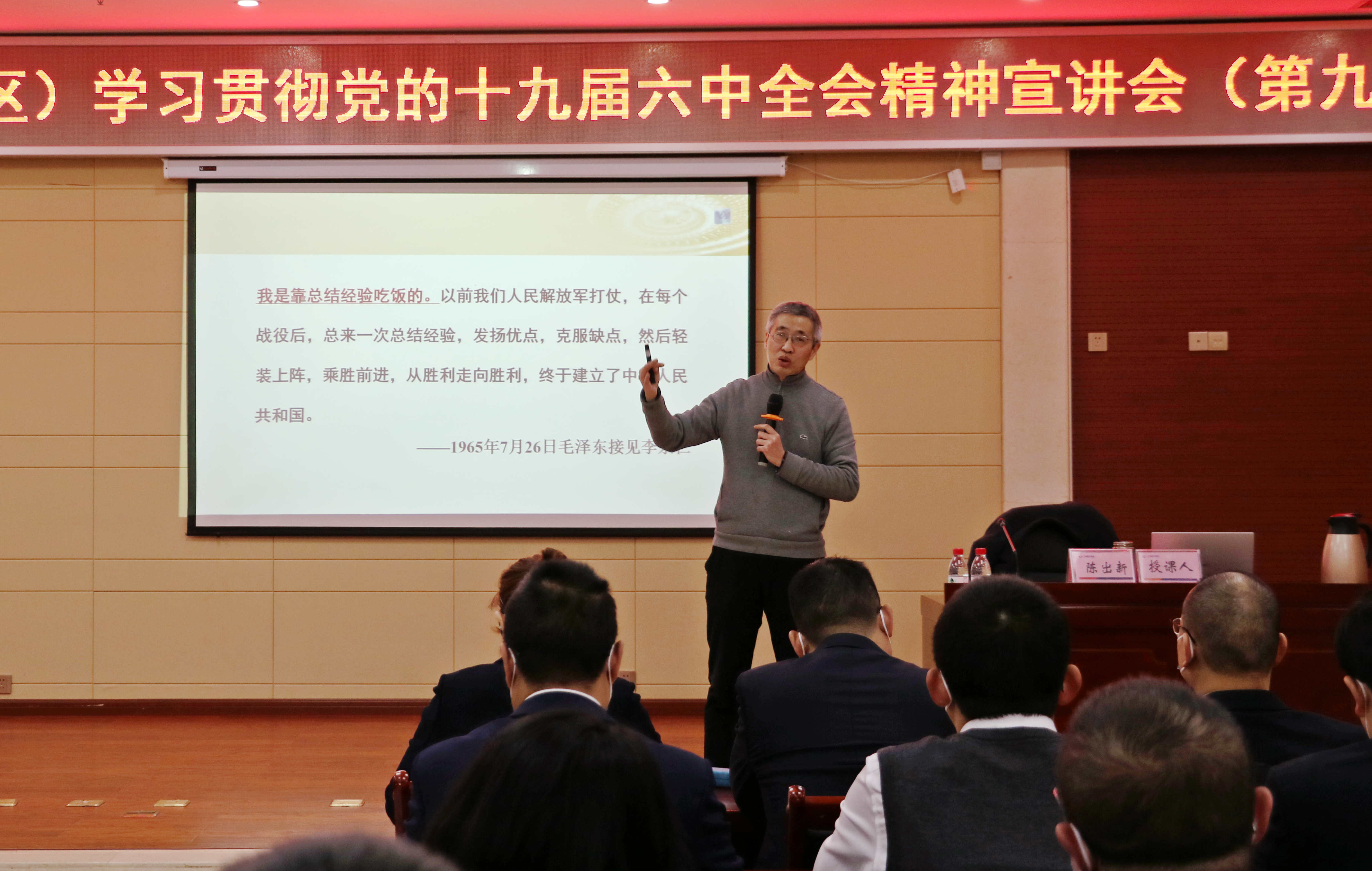 第九場宣講會(huì)由市委黨校經(jīng)濟(jì)學(xué)教研室陳出新教授作專題宣講,陳出新圍繞黨的百年奮斗重大意義、重大成就、歷史經(jīng)驗(yàn)和初心使命,闡明了省委十一屆十次全會(huì)貫徹黨的十九屆六中全會(huì)精神的戰(zhàn)略考量和重要舉措,對(duì)市第九次黨代會(huì)貫徹落實(shí)黨中央和省委重大決策部署,擘畫瀘州未來五年宏偉藍(lán)圖的戰(zhàn)略部署作了深入解讀。
