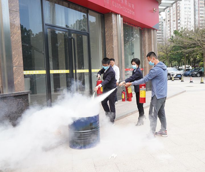 現(xiàn)場(chǎng)情景模擬疏散演練環(huán)節(jié),教官使用煙霧彈模擬會(huì)議室發(fā)生火災(zāi)情景,現(xiàn)場(chǎng)工作人員組織參訓(xùn)人員從五樓會(huì)議室按安全疏散通道指示撤離到一樓大門(mén)集中。在教官講解示范下,參訓(xùn)人員進(jìn)一步學(xué)習(xí)了干粉滅火器的使用方法和注意事項(xiàng),參與了滅油桶火實(shí)操活動(dòng)。
