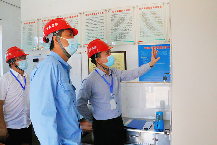 在中油王港及港口經(jīng)營公司,督導(dǎo)組一行認(rèn)真檢查生產(chǎn)作業(yè)及疫情防控各項保障措施落實情況,并詳細(xì)向一線工作人員詢問工作流程、人員值守情況及生活狀況。