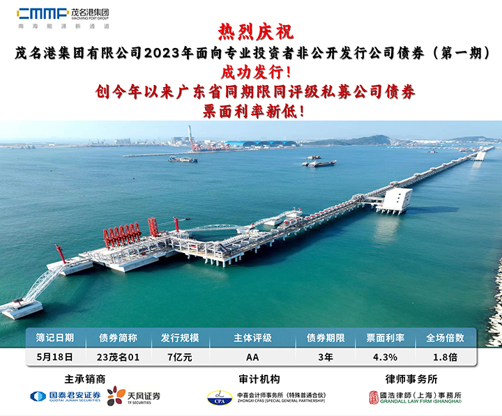 熱烈祝賀茂名港集團(tuán)2023年非公開(kāi)發(fā)行7億元公司債券成功發(fā)行