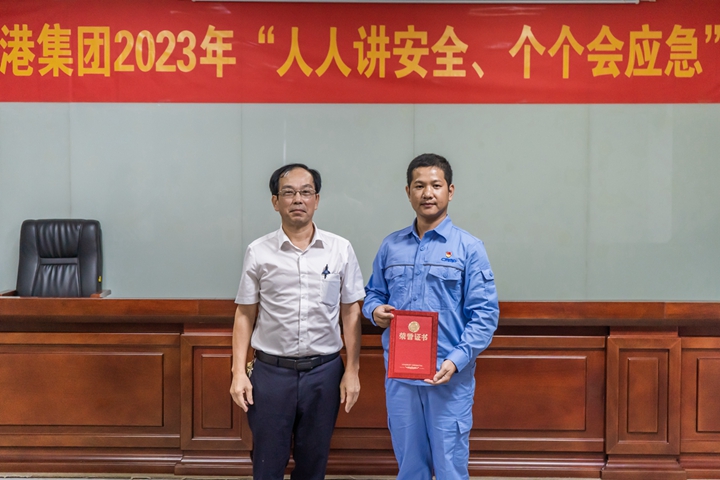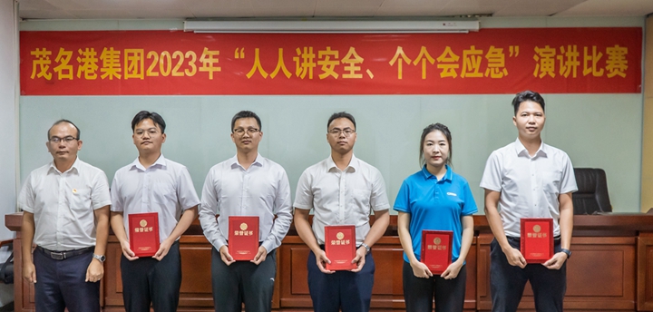 ▲長興石化公司蔡升高、李俊毅、何雄勝,濱海控股公司江振好、港口經(jīng)營公司張斯瑜榮獲三等獎 比賽期間還進行安全生產(chǎn)知識有獎?chuàng)尨瓠h(huán)節(jié),觀眾積極踴躍舉手參與,現(xiàn)場氣氛激烈。 蔡光章對本次“人人講安全、個個會應急”演講比賽給予充分肯定。他表示此次演講比賽選手立足本職崗位、結合工作實際,多角度多維度闡述對安全生產(chǎn)工作所感、所悟、所思,詮釋了安全生產(chǎn)的重要意義,營造了“人人講安全、個個會應急”濃厚氛圍。他強調,集團上下要樹牢安全理念,重視應急管理,掌握應急救援的基本流程、方法和要求,學會自救互救等本領,切實提高突發(fā)事件預防和應急處置能力,為集團高質量發(fā)展筑牢安全屏障。 本次比賽吸引了集團機關各部室及下屬企業(yè)代表共50多人到現(xiàn)場觀賽聆聽。
