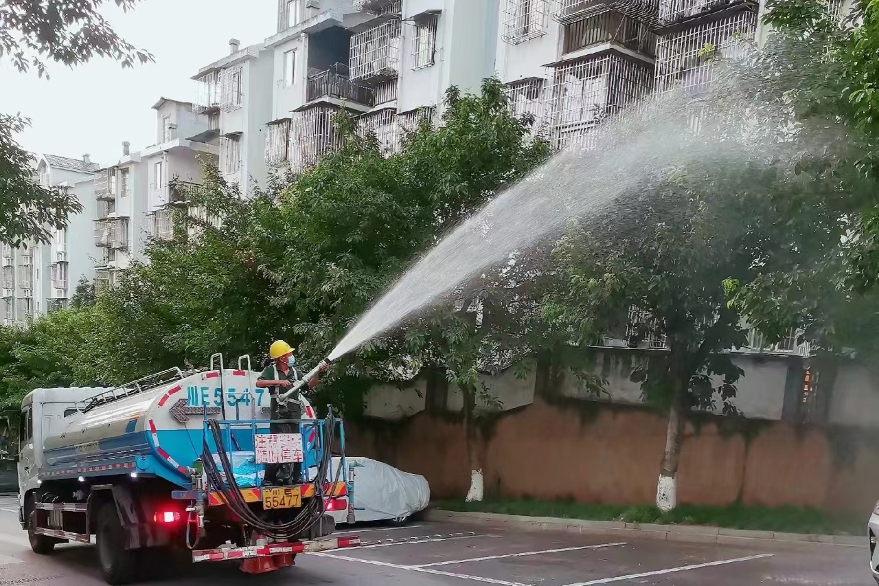 為防止夏季瀝青混凝土路面受高溫影響產(chǎn)生裂縫、塌陷等現(xiàn)象,市政建設(shè)公司環(huán)衛(wèi)車輛對(duì)沱二橋、葛洲壩、長(zhǎng)二橋、千鳳路、二環(huán)路等5個(gè)段車行道進(jìn)行循環(huán)灑水降溫作業(yè),維護(hù)路面約87萬(wàn)平方米,認(rèn)真做好路面養(yǎng)護(hù)工作,維護(hù)車輛行車安全和道路整潔。