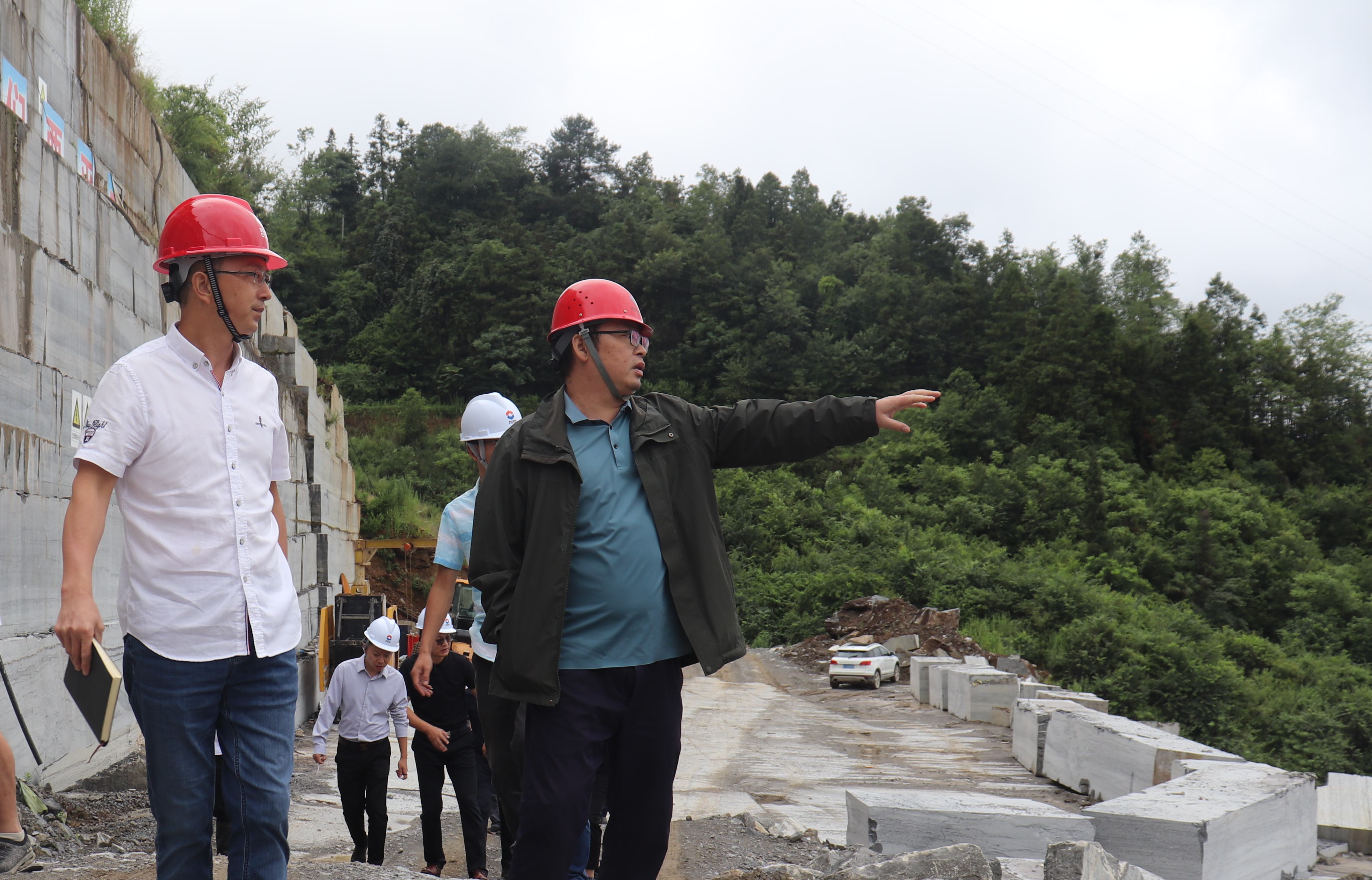 在勇華建材公司老馬礦項目現(xiàn)場,黃修華一行認(rèn)真詢問、查看了現(xiàn)場安全、環(huán)保管控措施落實情況,就存在的隱患和問題,結(jié)合現(xiàn)場實際提出了整改意見。