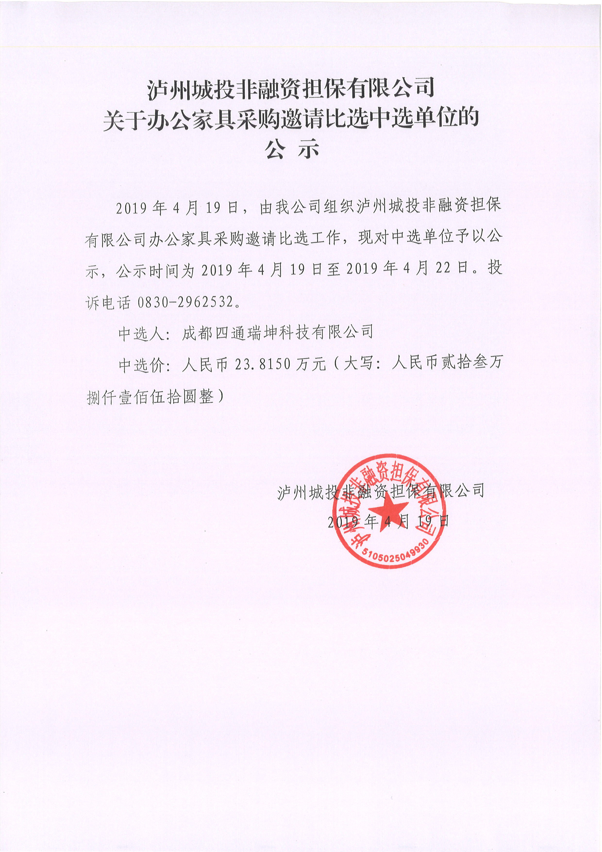 關(guān)于辦公家具采購(gòu)邀請(qǐng)比選中選單位的公示