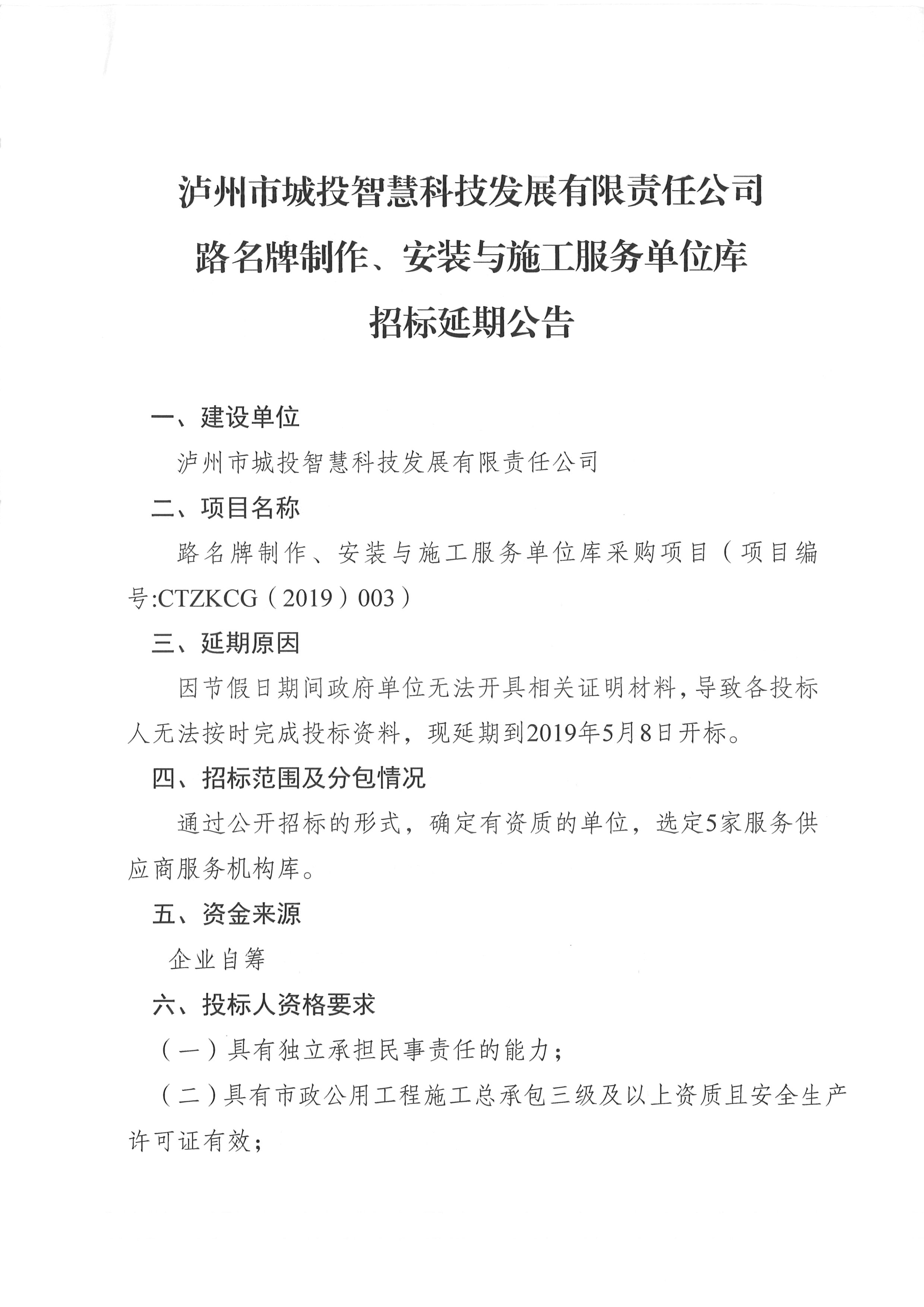 路名牌制作、安裝與施工服務(wù)單位庫招標延期公告