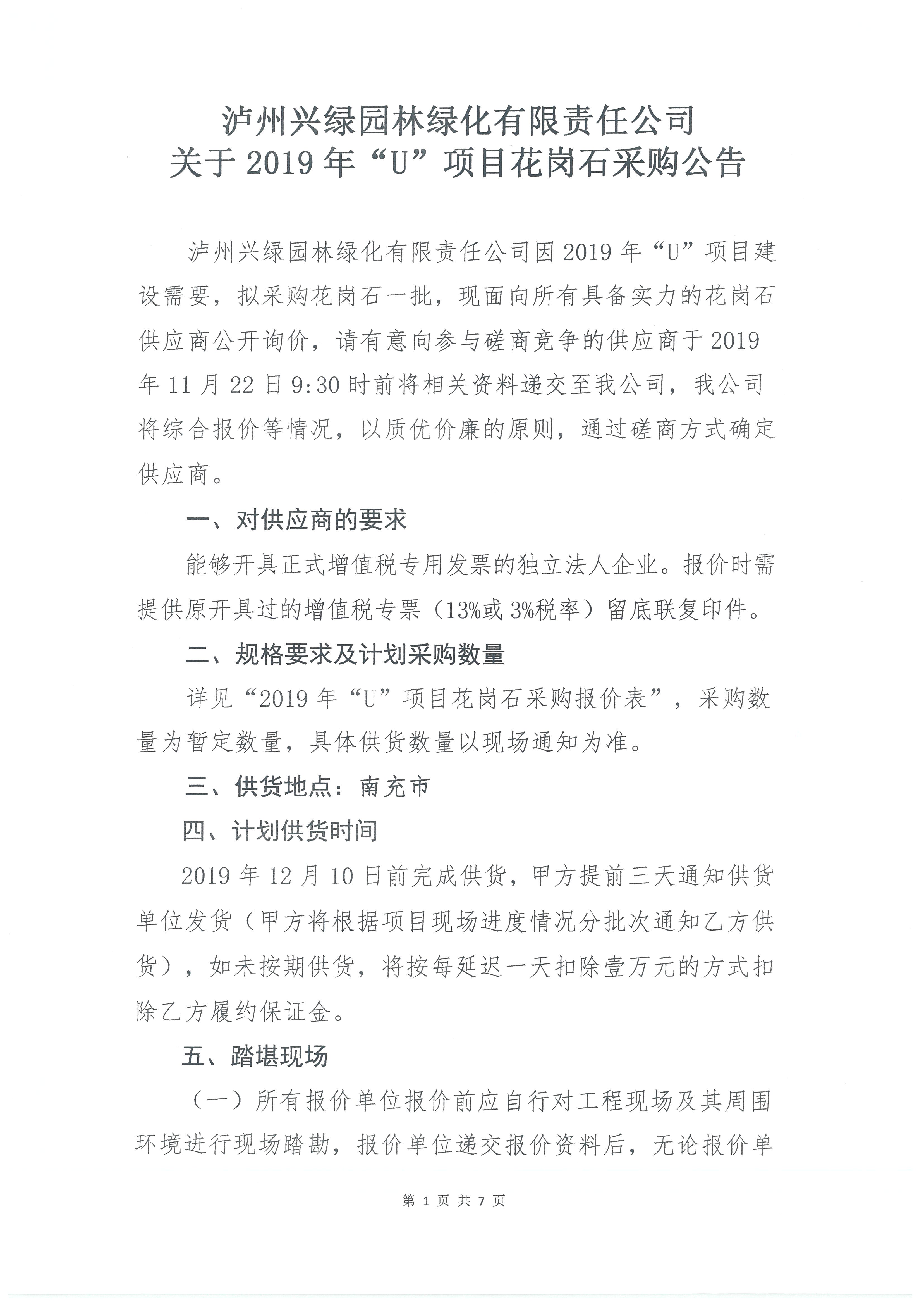 2019年“U”項(xiàng)目花崗石采購(gòu)公告