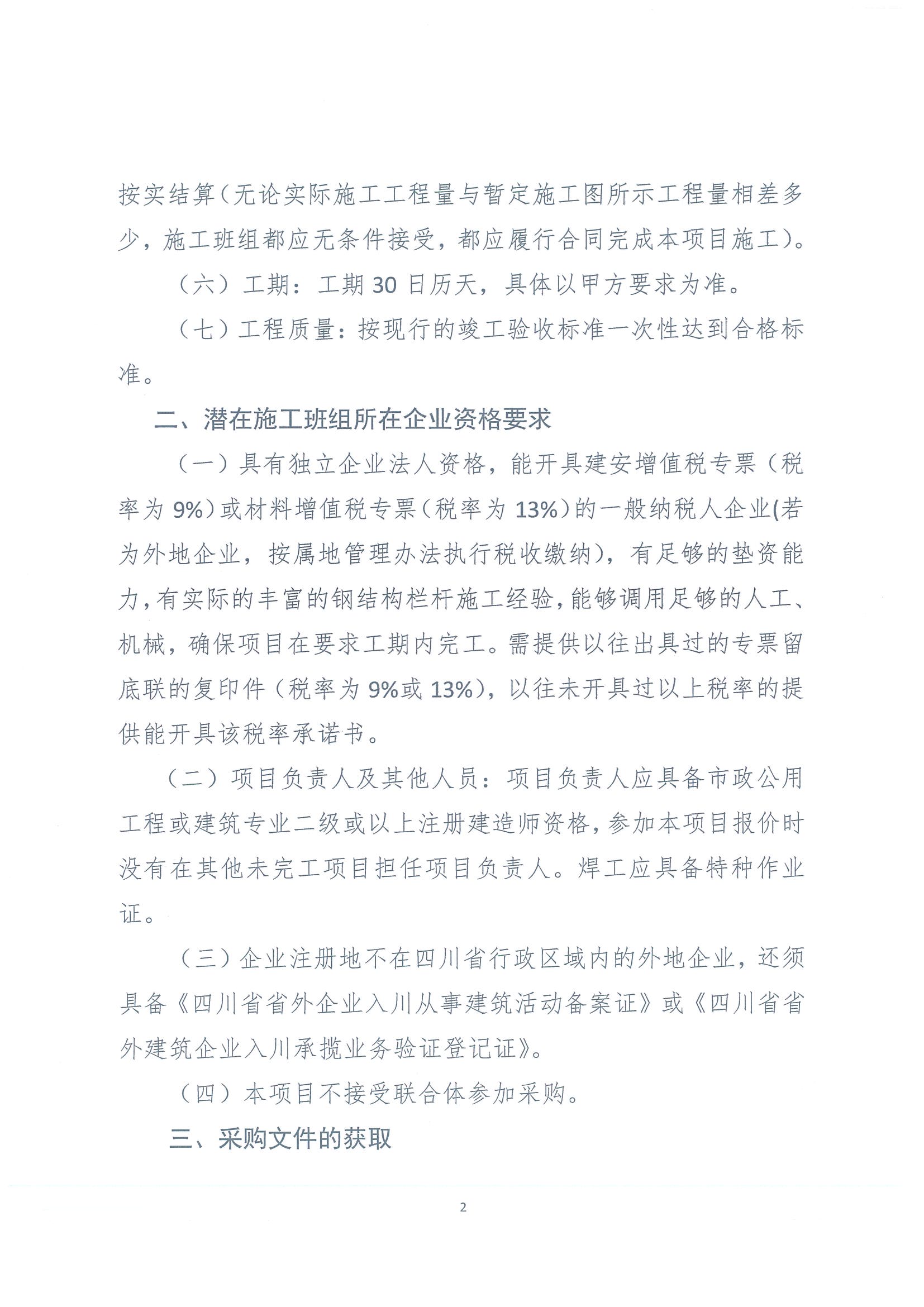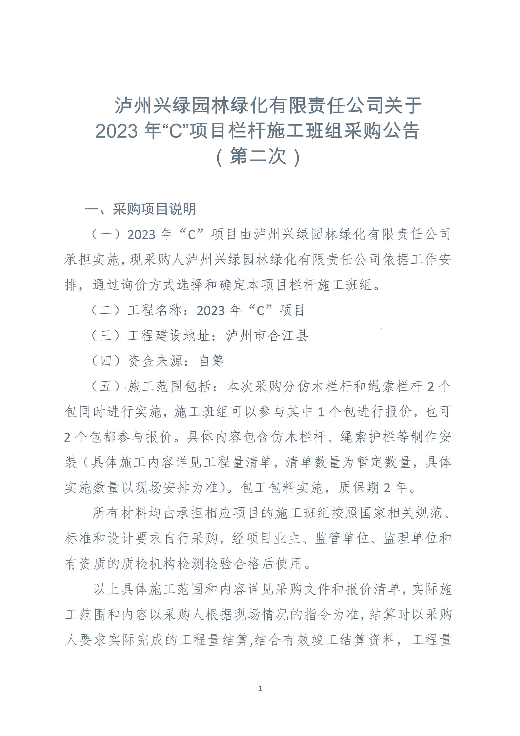 2023年“C”項(xiàng)目采購(gòu)欄桿施工班組(第二次)