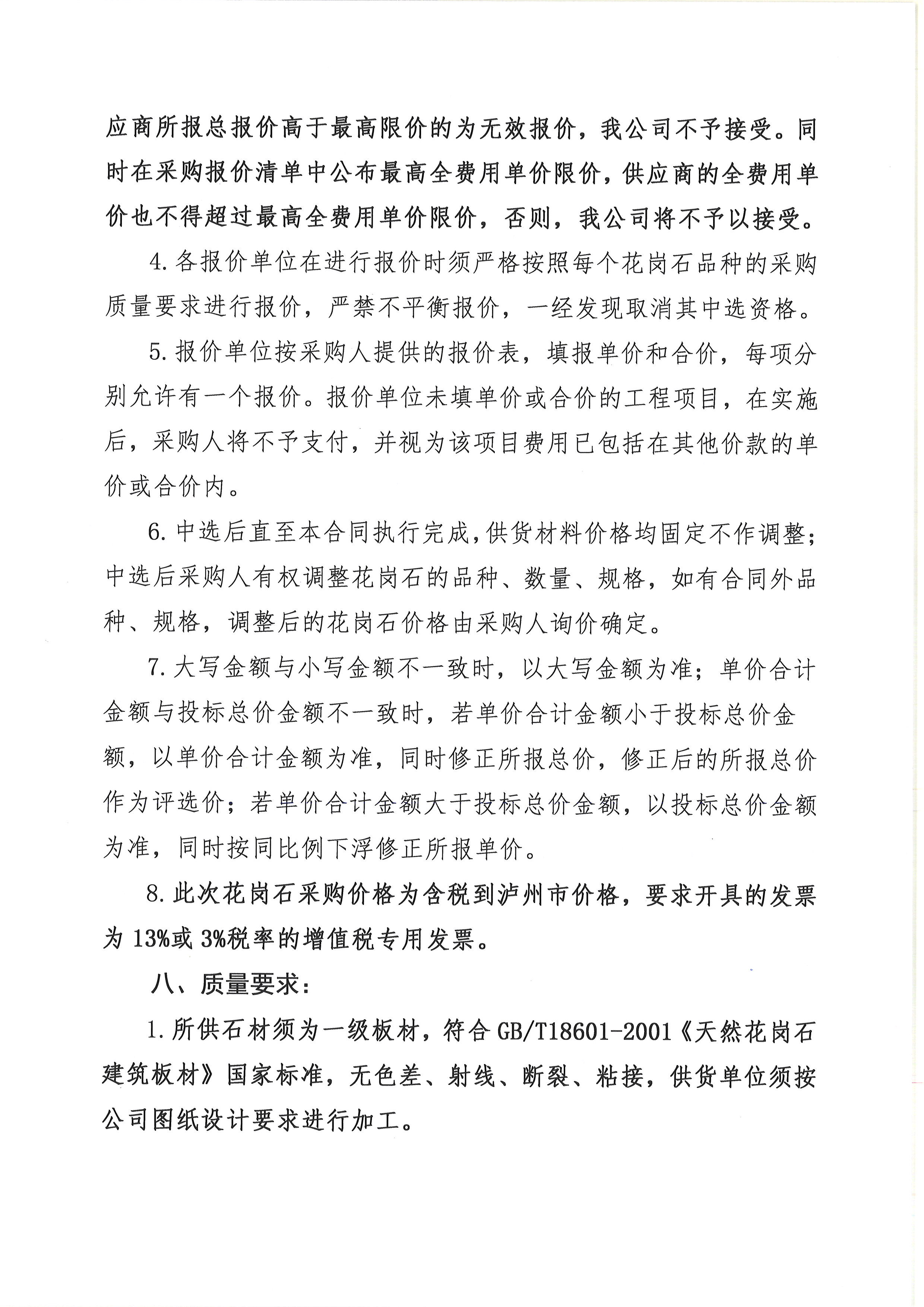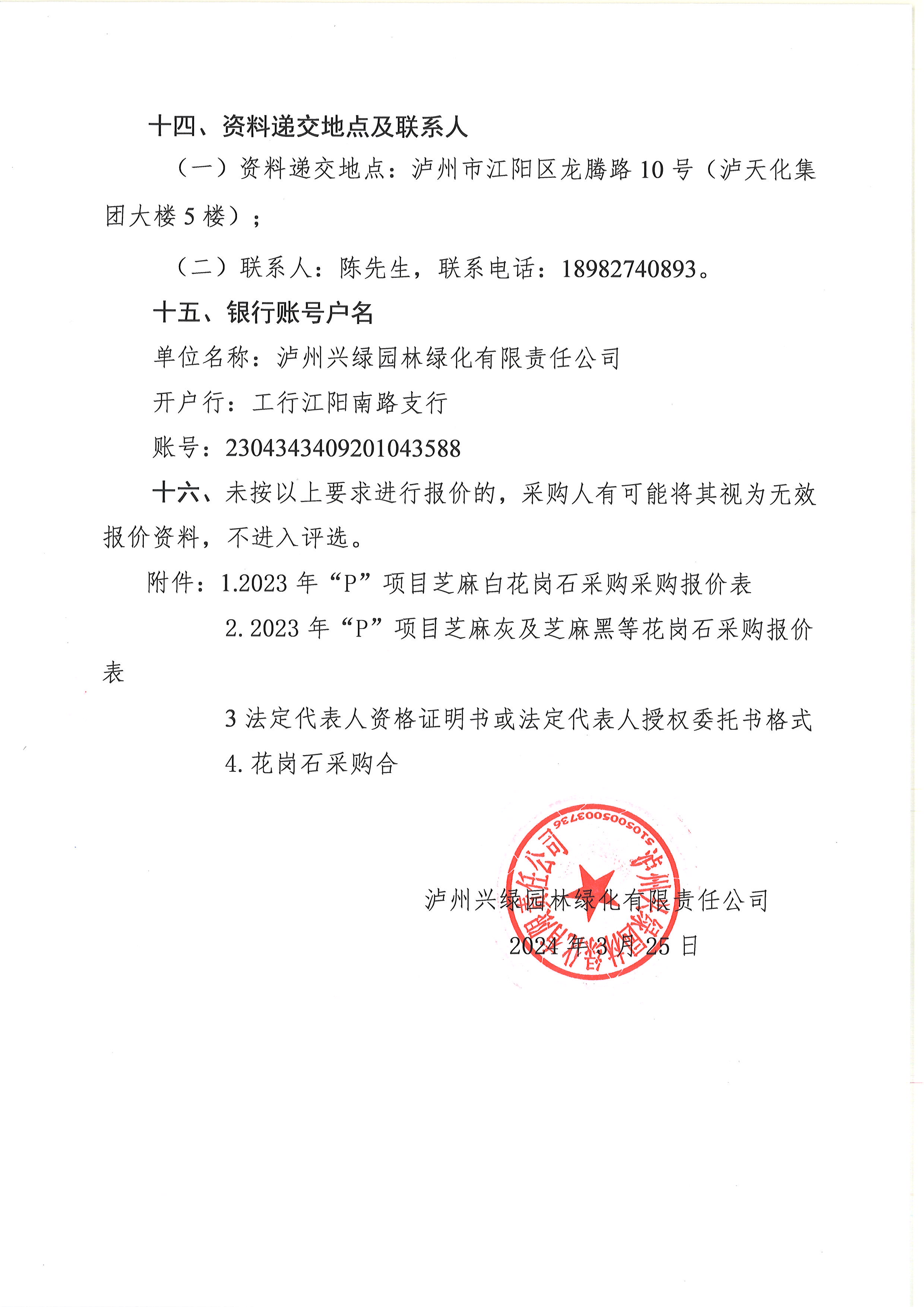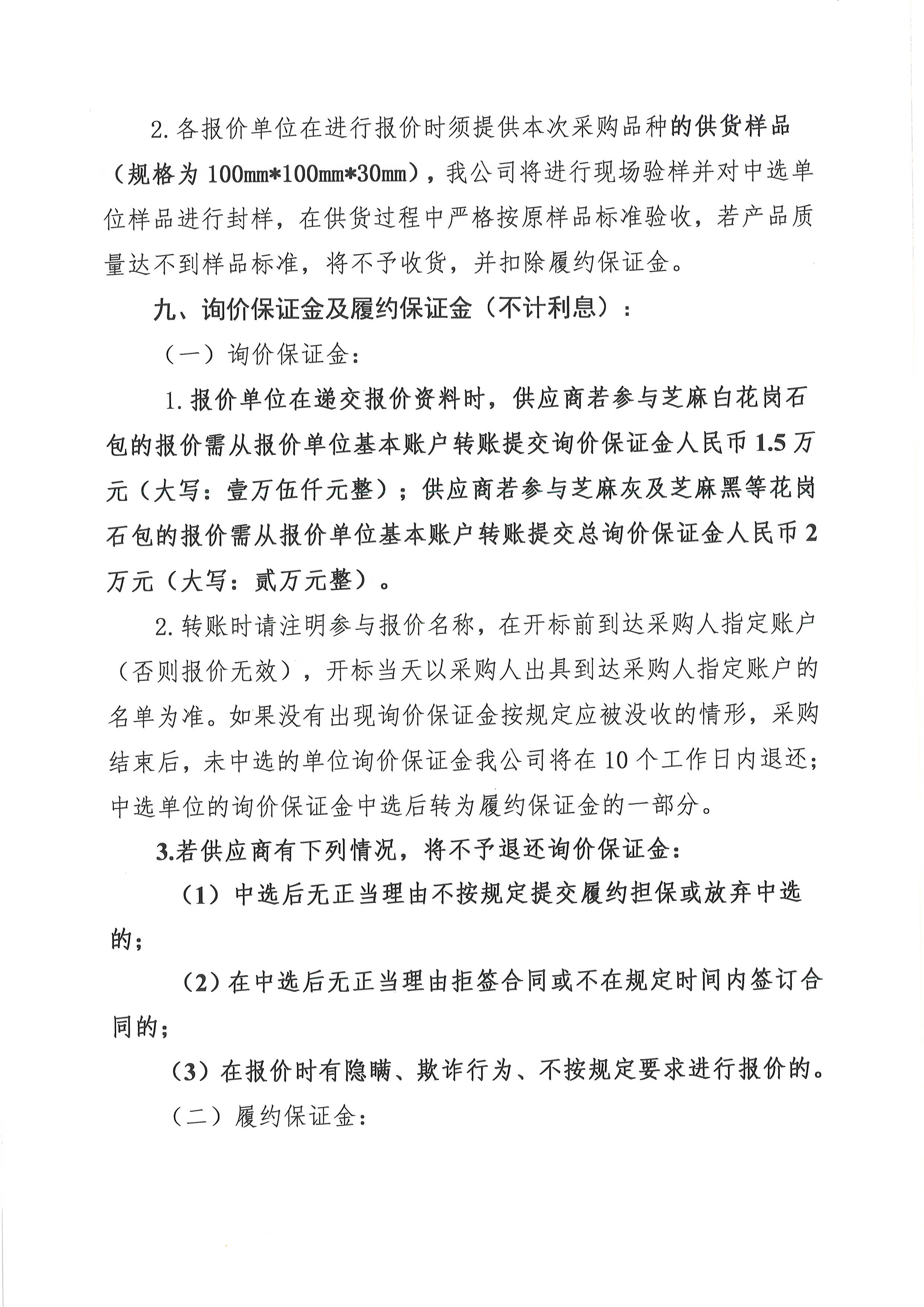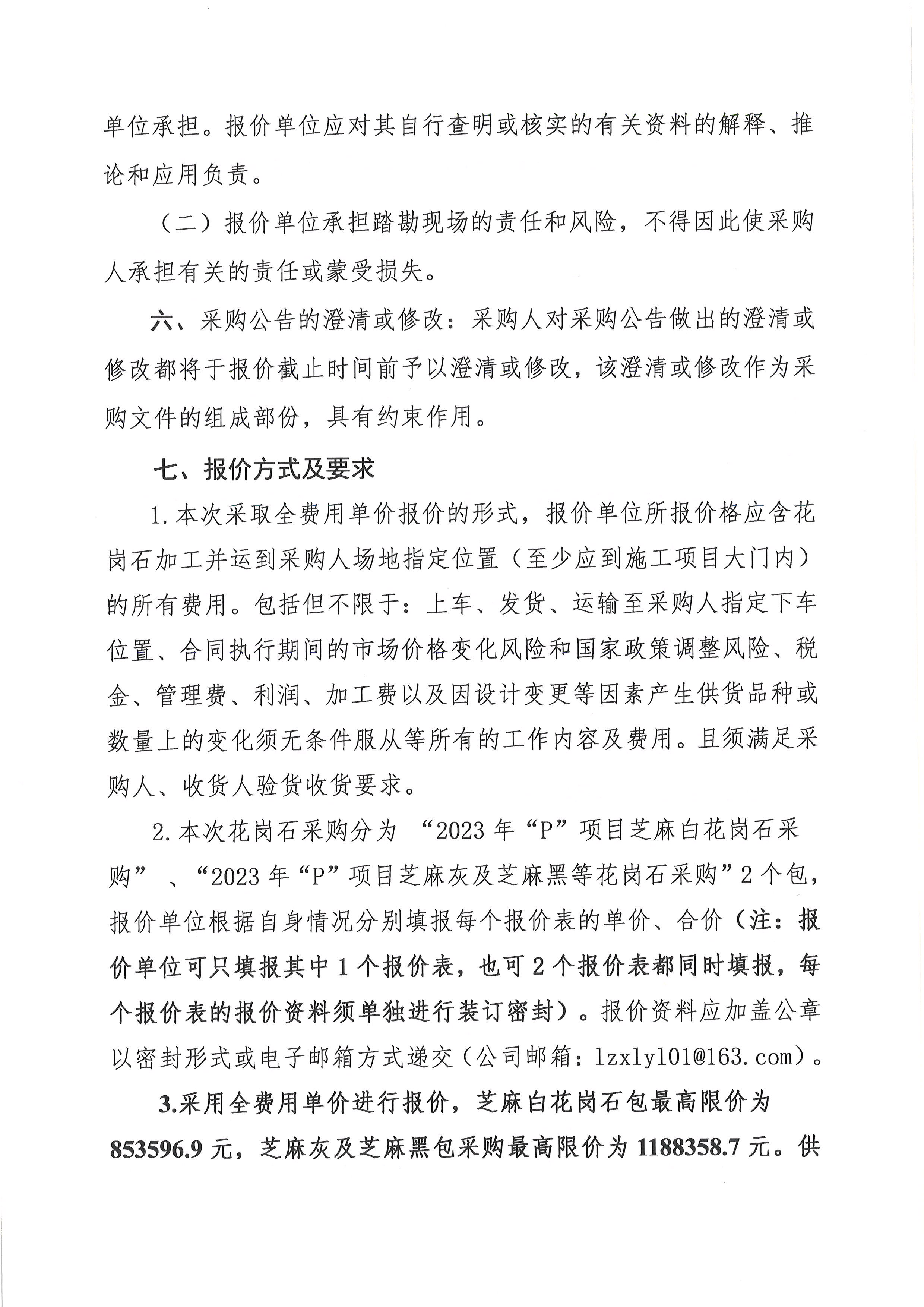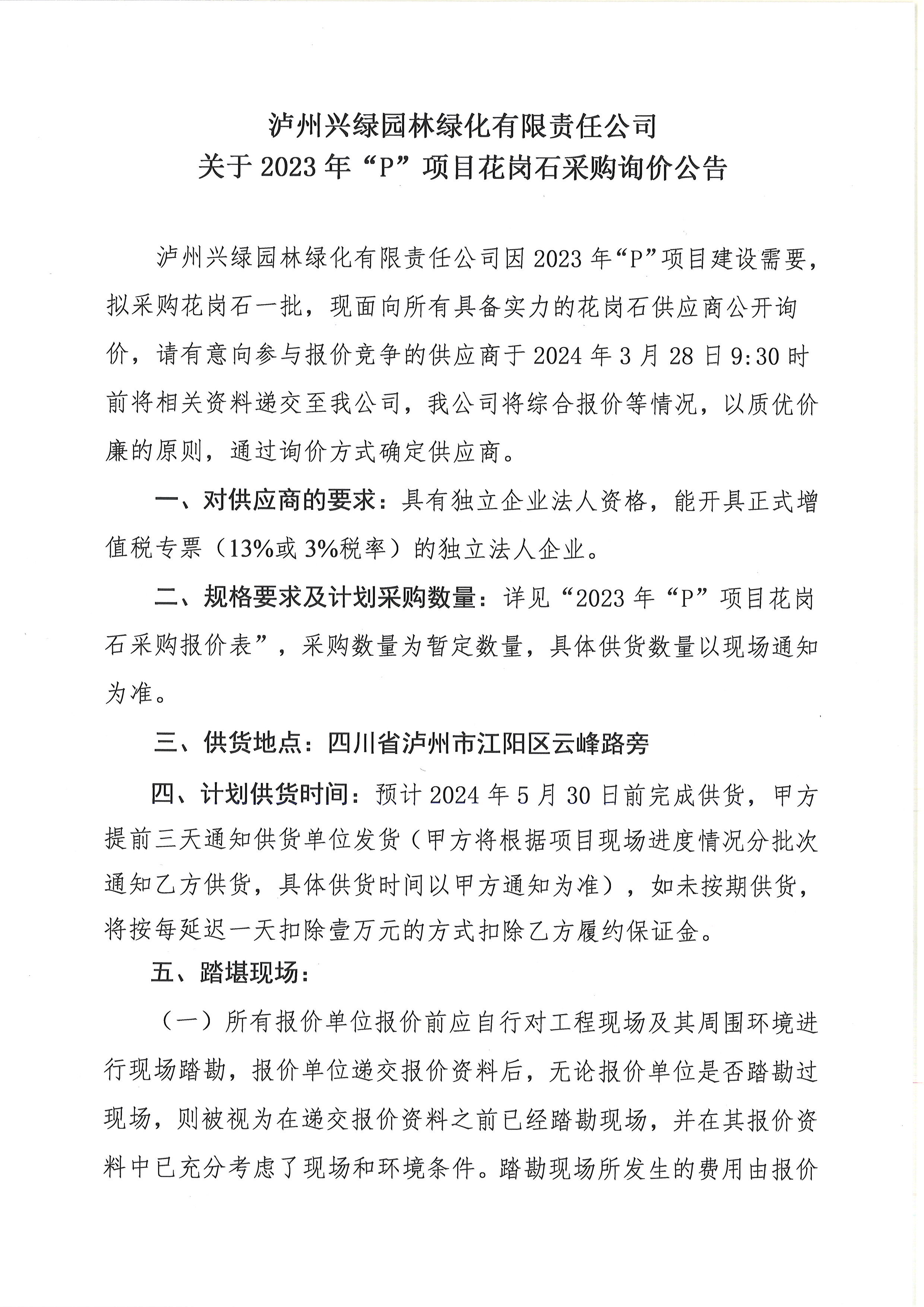 2023年“P”項目花崗石采購詢價公告